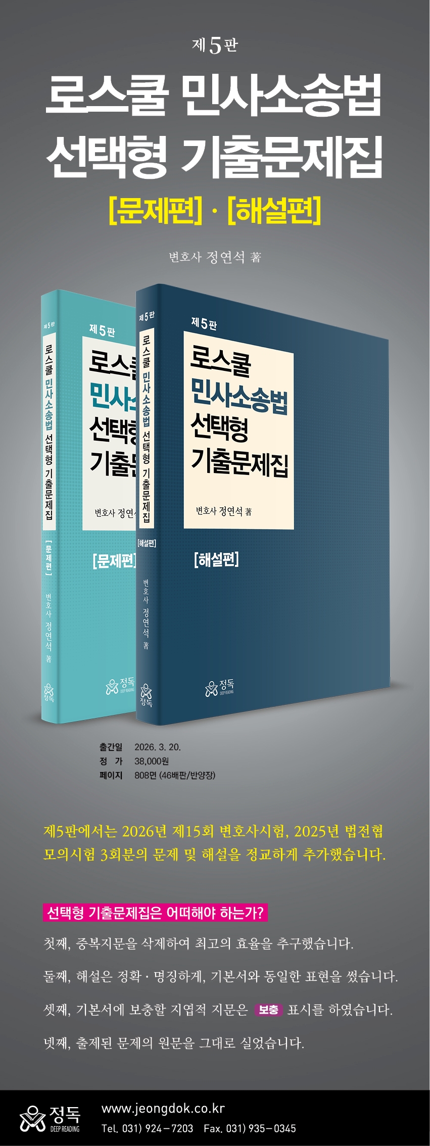 Á¦5ÆÇ¿¡¼´Â 2026³â Á¦15ȸ º¯È£»ç½ÃÇè, 2025³â ¹ýÀüÇù ¸ðÀǽÃÇè 3ȸºÐÀÇ ¹®Á¦ ¹× ÇØ¼³À» ¸Å¿ì Á¤±³ÇÏ°Ô Ãß°¡Çß½À´Ï´Ù.